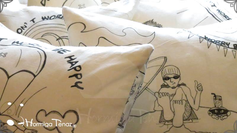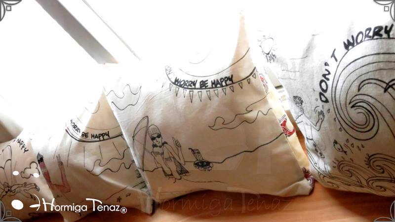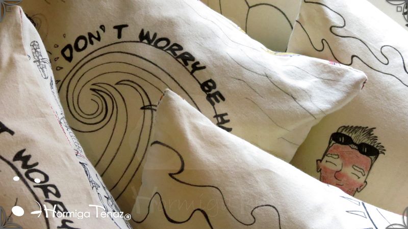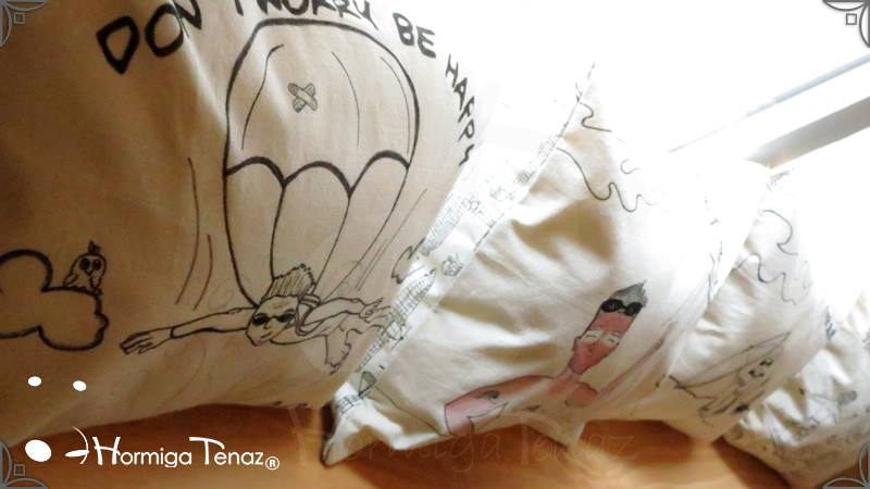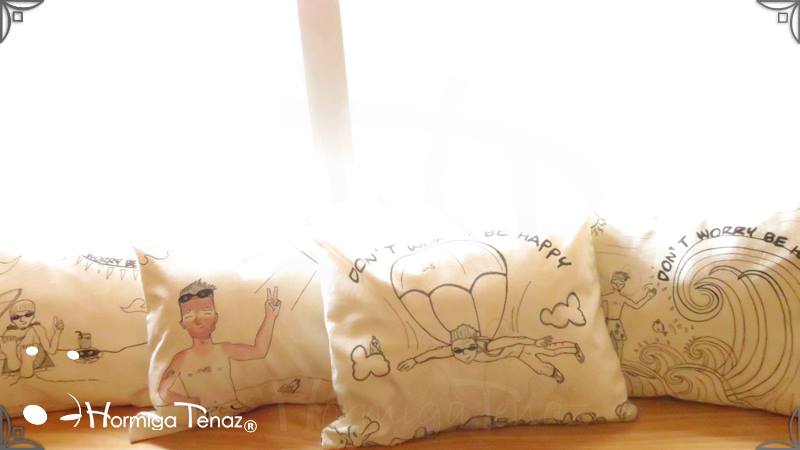 Almohadones ilustrados con los personajes de las historietas Boys. Realizados en tela de Arpillera, con relleno de vellón siliconado y con sistema de solapas para un mejor lavado. Medidas: de 30 x 40 cm cada almohadón.