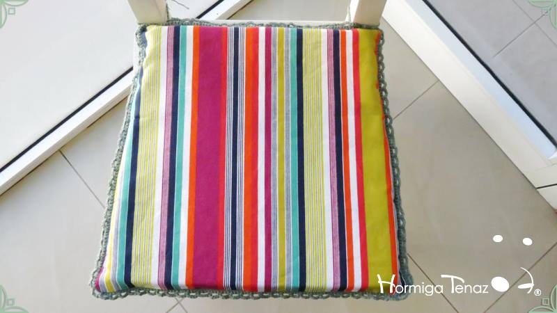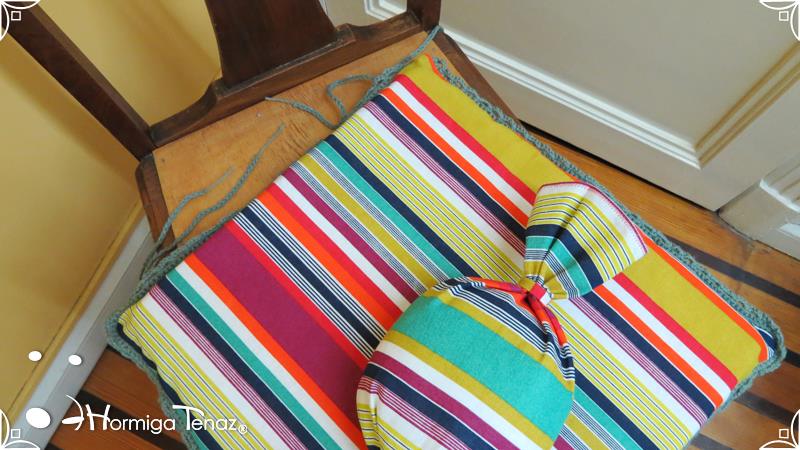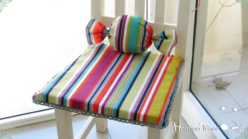 Almohadón confeccionado a la forma de la silla, realizado en Loneta Provenzal con