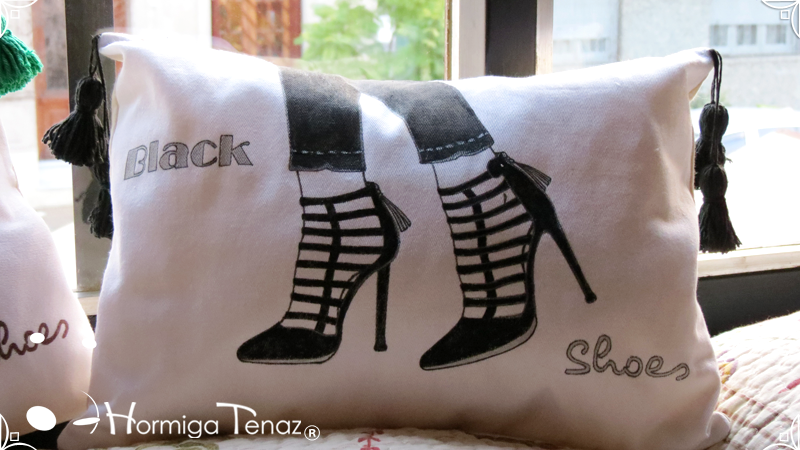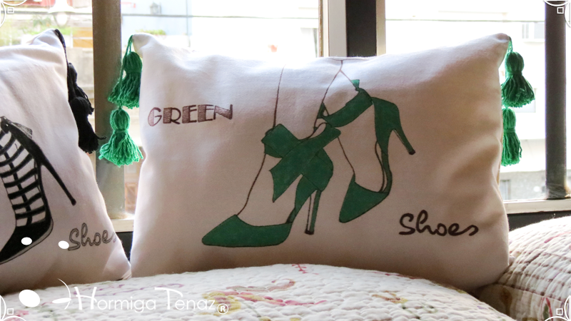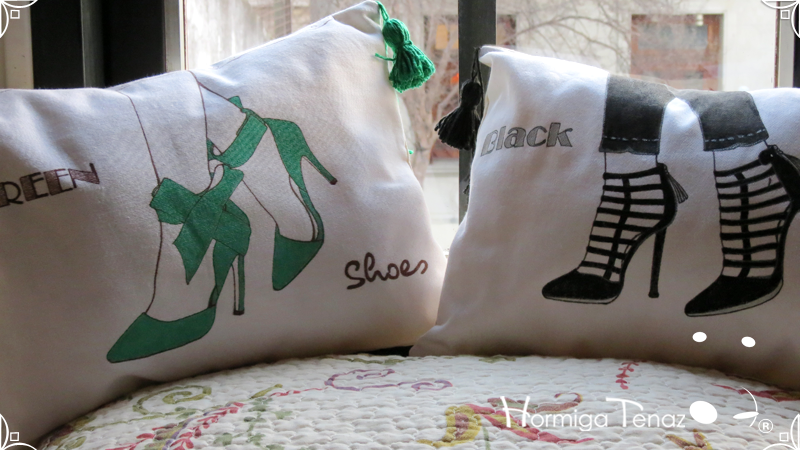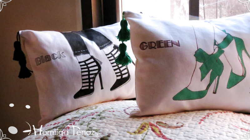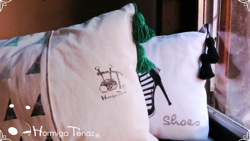 Almohadones pintados a mano realizados en tela de gabardina blanca