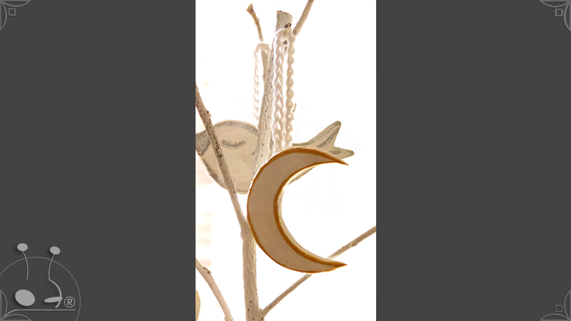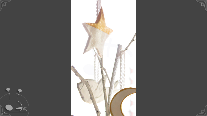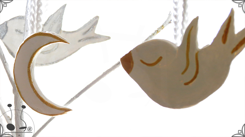 Los diseños son pares de 2 estrellas, 2 lunas, 2 nubes, 2 corazones, 2 campanas, 2 aves y 1 perla.