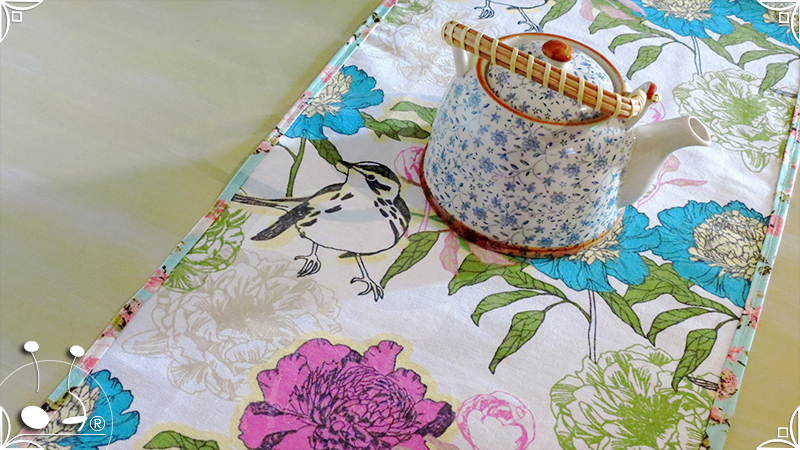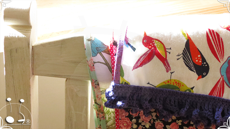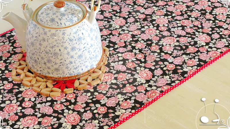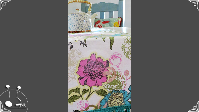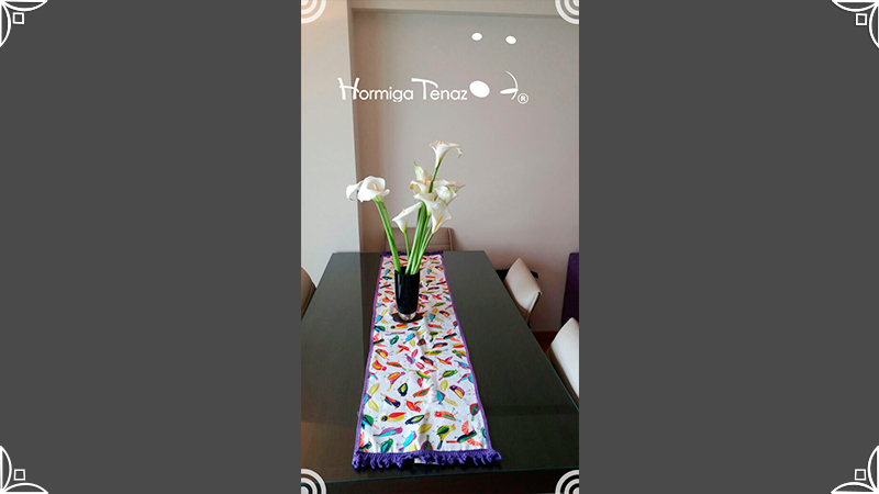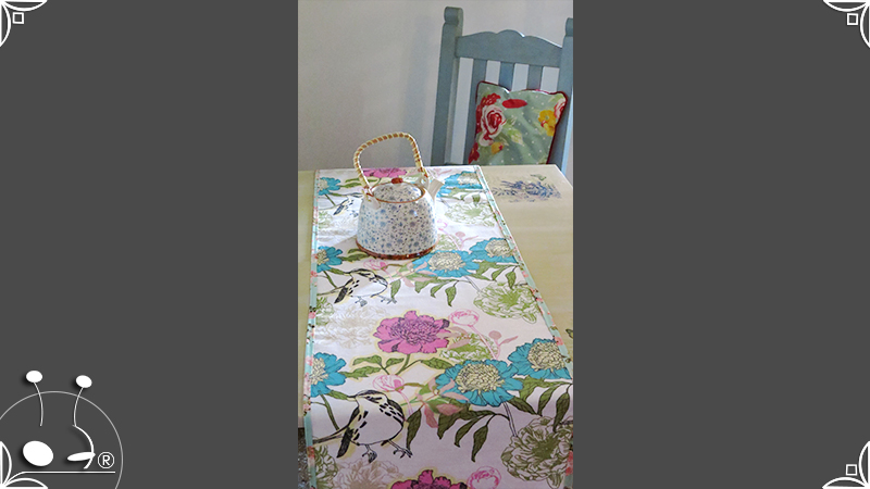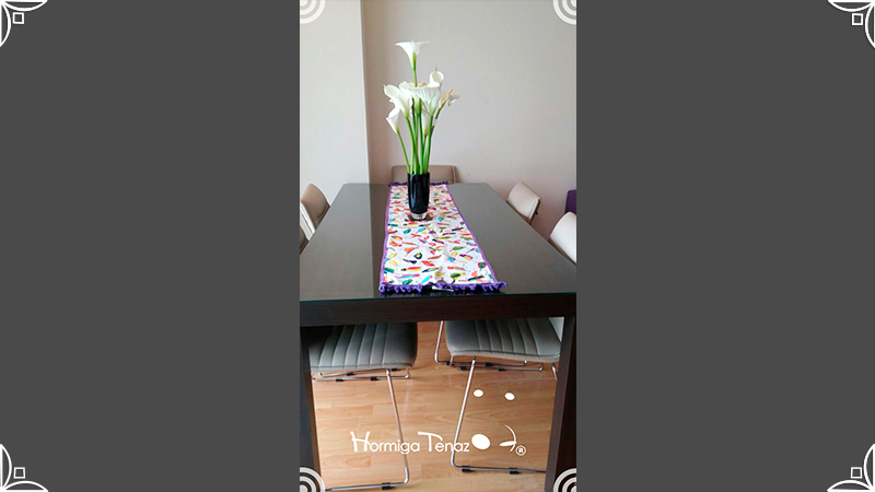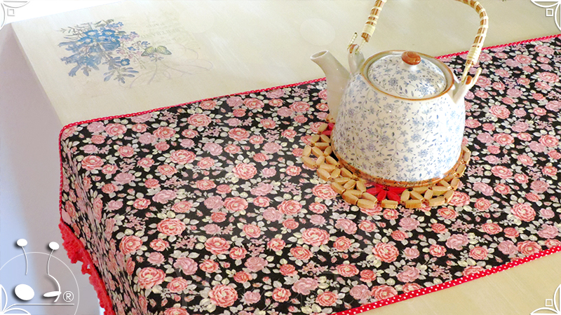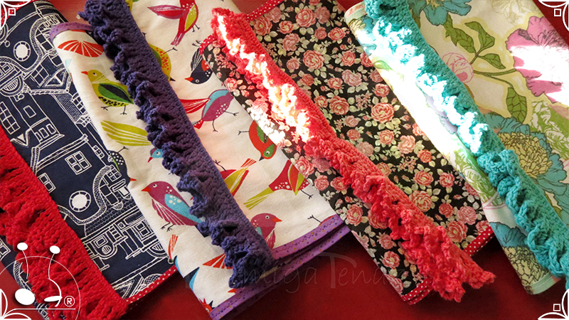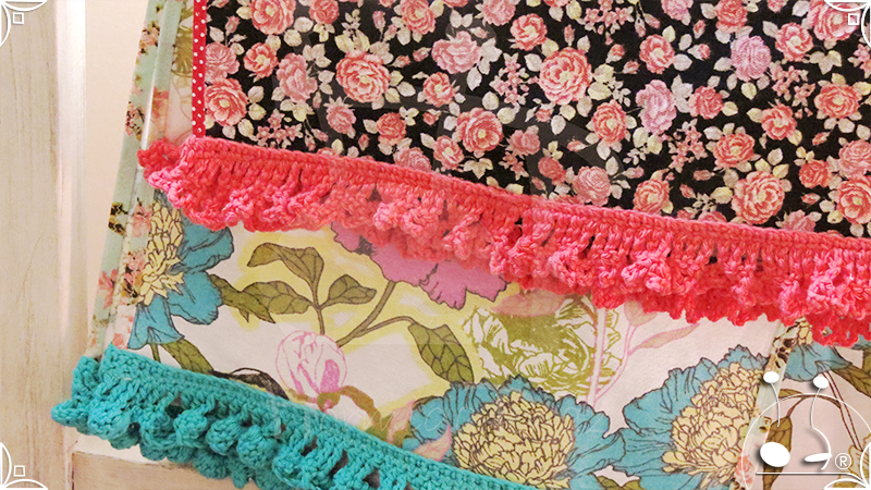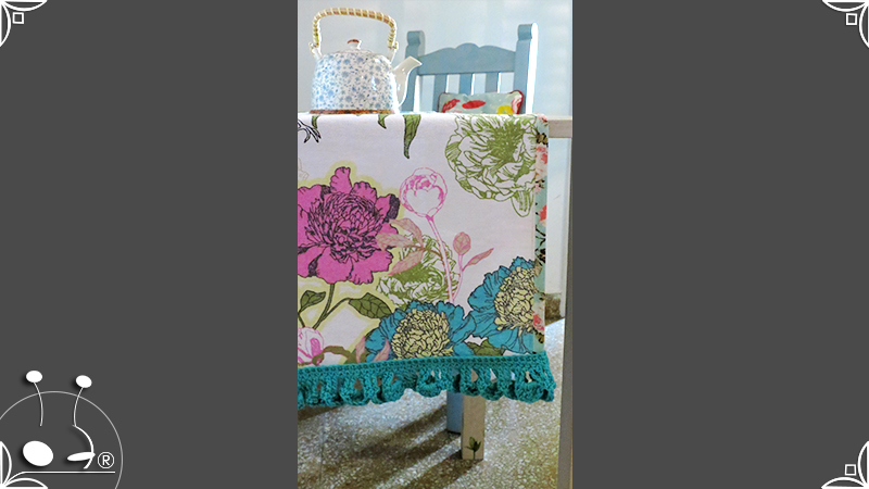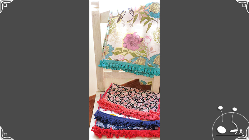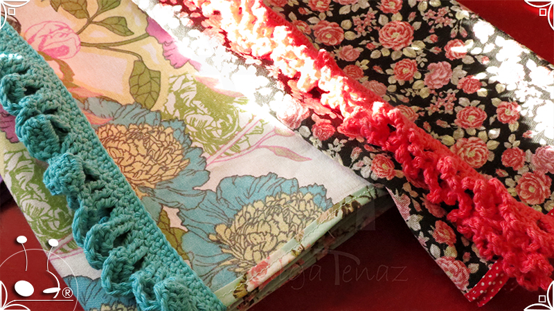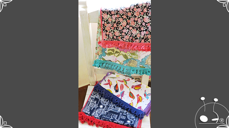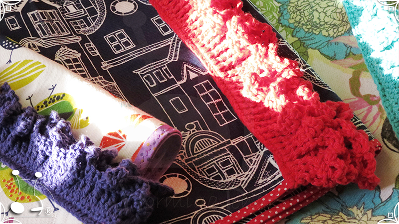 Caminos de mesa realizados en lona provenzal con cinta bies y volados tejidos al crochet.