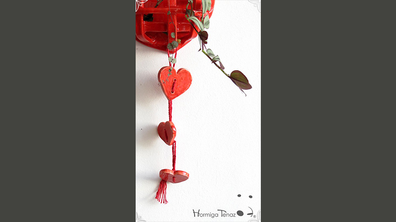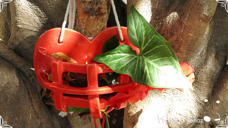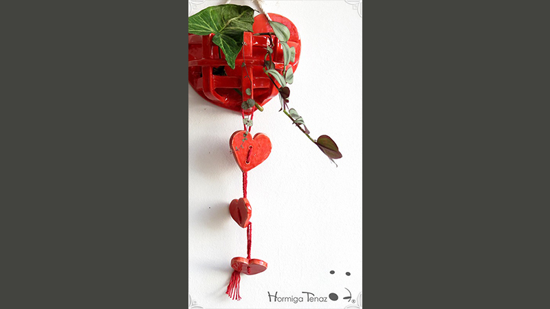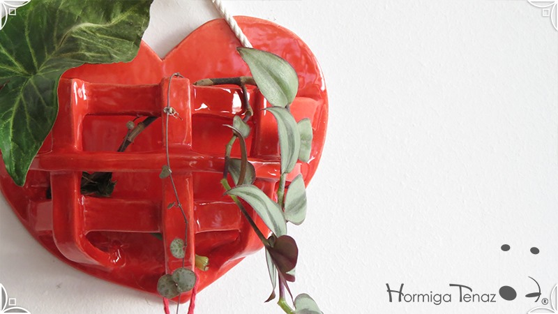Canasta colgante de cerámica artesanal calada, especial para orquídeas epífitas.