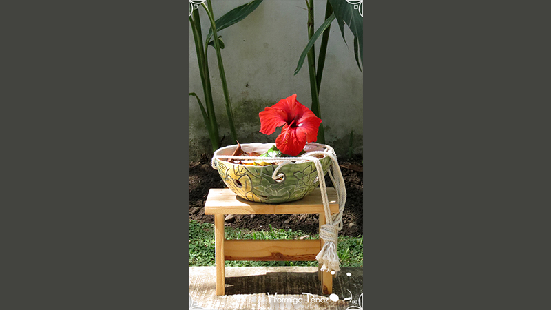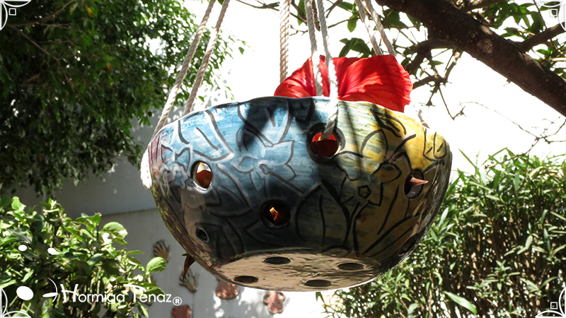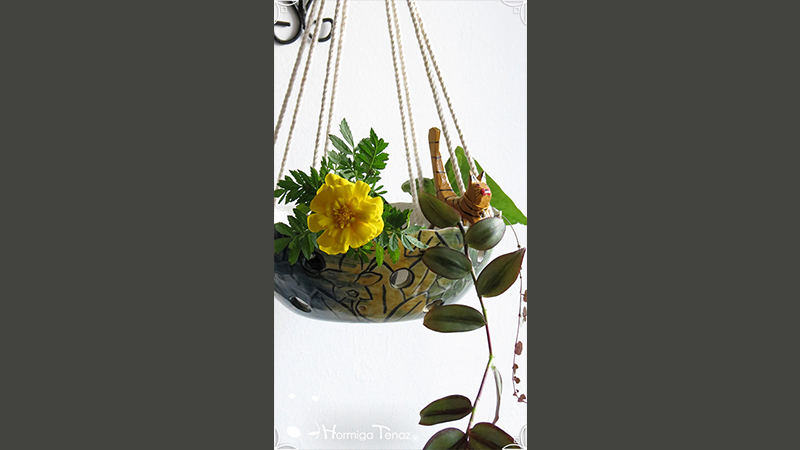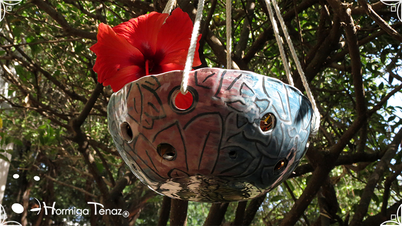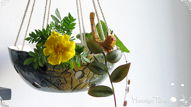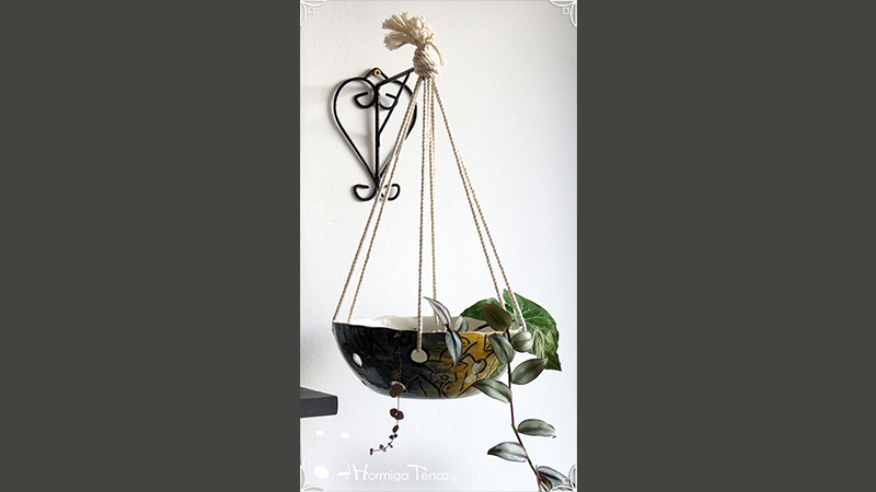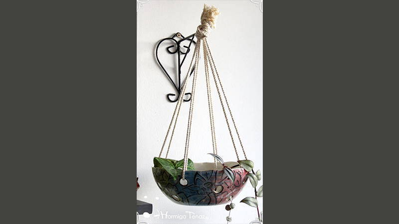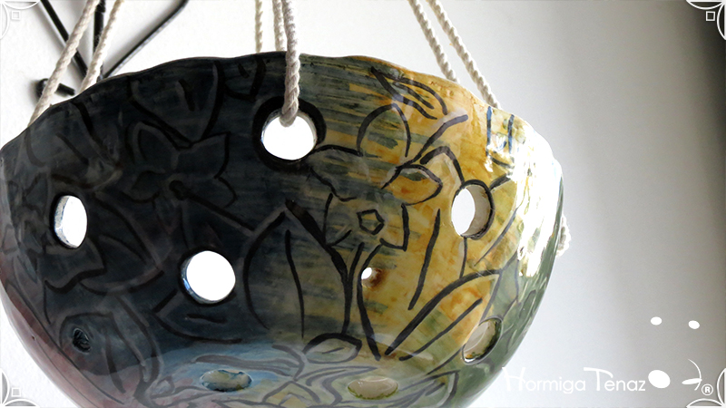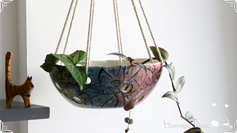 Maceta colgante de cerámica calada, especial para orquídeas epífitas.