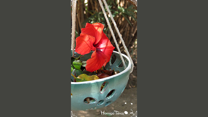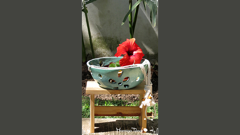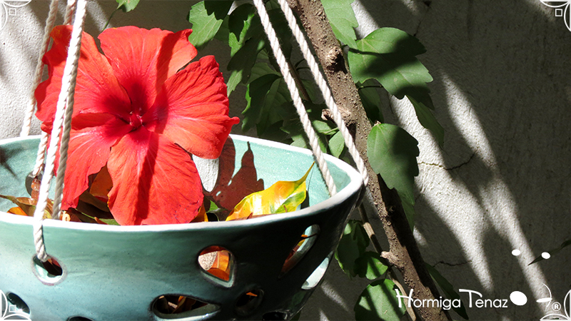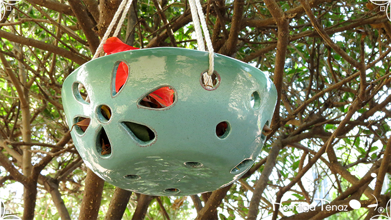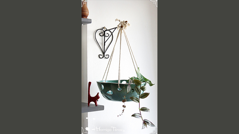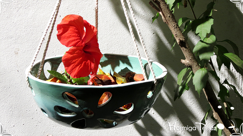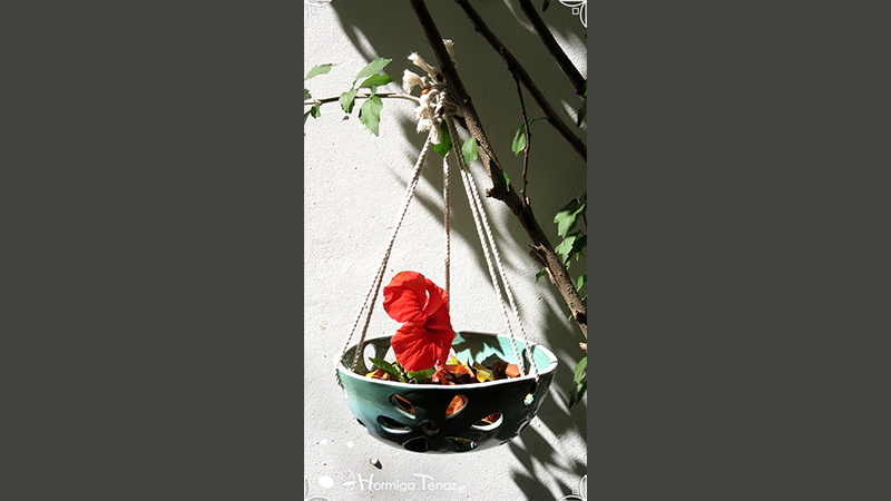 Maceta colgante de cerámica calada, especial para orquídeas epífitas.