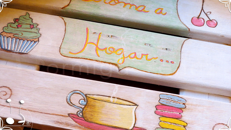 | Posafuente artesanal con un estilo Shabby-rústico pintada a mano en versión femenina. El posafuente fue realizada en combinación con la Alacena Ella 웃 Medidas: 30 cm x 30 cm.