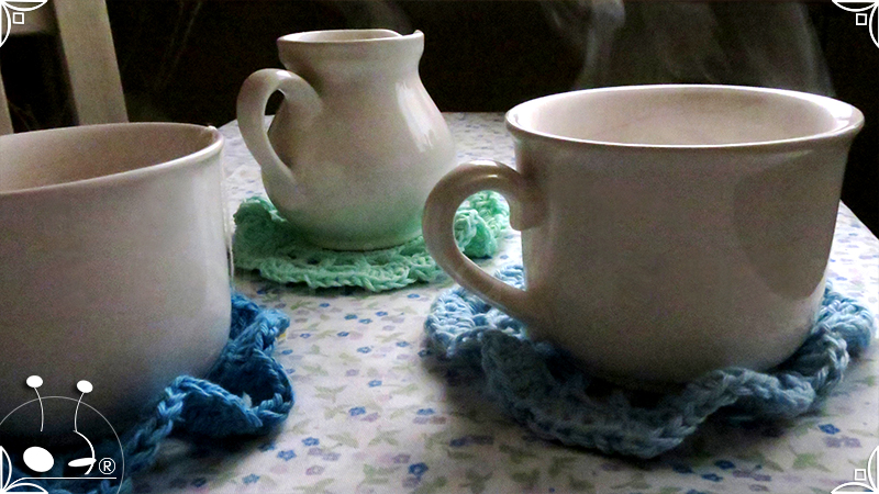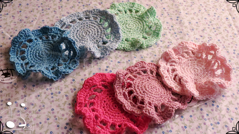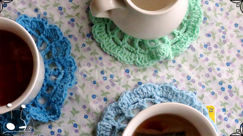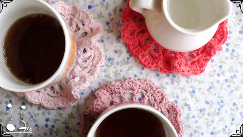 Posavasos tejidos al crochet en estilo romántico y en colores engamados.