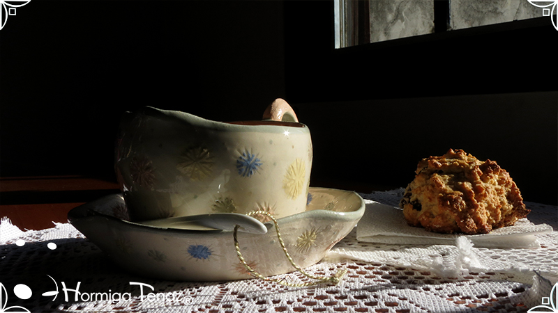 Medidas: 10 cm de diámetro x 7 cm de altura la taza y de 16 cm de diámetro el plato.